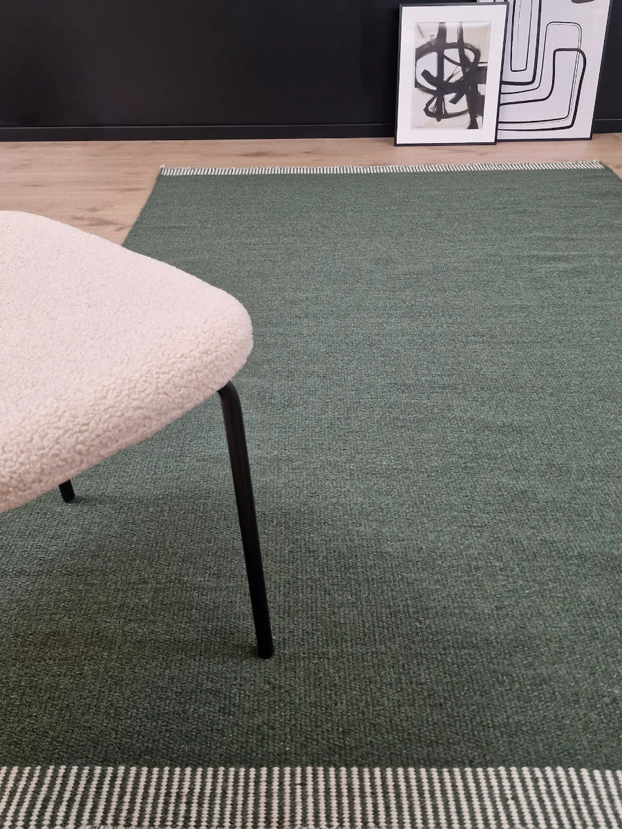 Upptäck Rachel Grön, en handvävd ullmatta med en lugnande grön ton och mjuk struktur. Hållbar, vändbar och etiskt certifierad för ditt harmoniska hem.