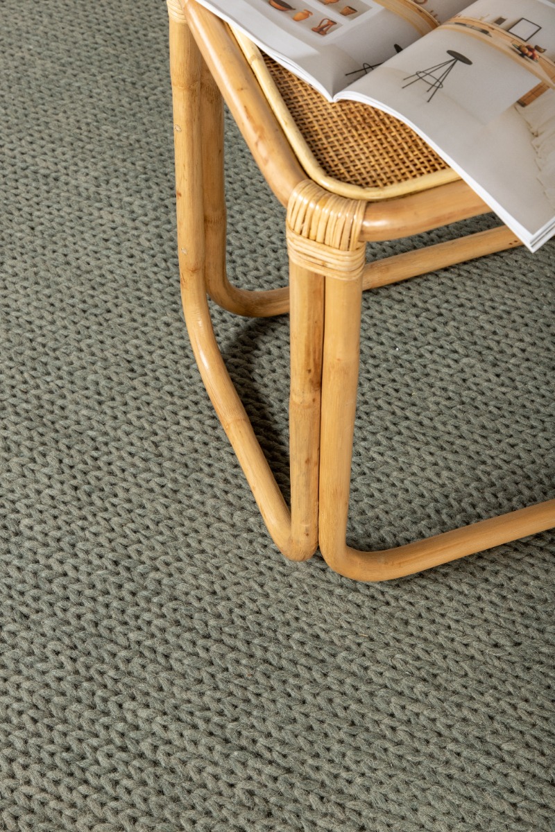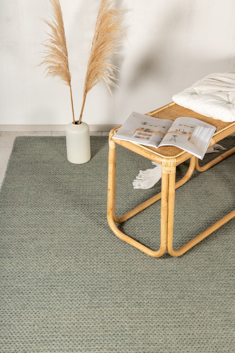 Mjuk och hållbar grön ullmatta med naturlig värme och ca 15 mm tjocklek. Perfekt för att skapa en ombonad atmosfär i hemmet.