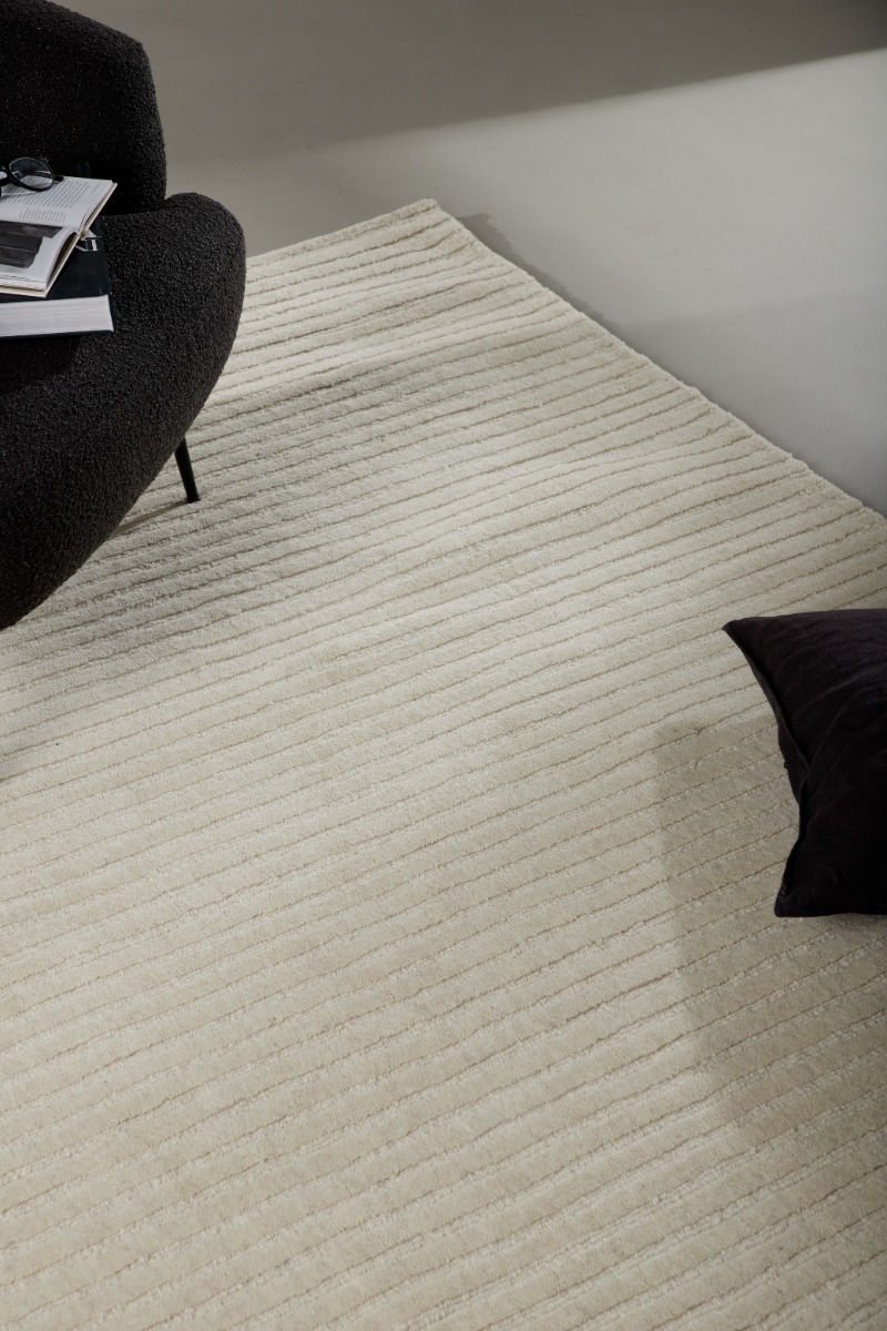 Mjukt och naturligt varm vit ullmatta med elegant design och praktiska egenskaper. Perfekt för att förhöja heminredningen med hög komfort.