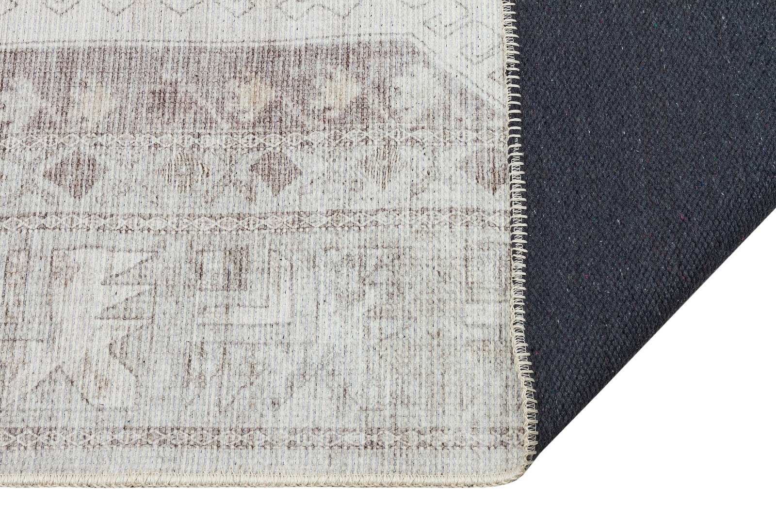 Stor, tvättbar chenillebomullsmatta i creme med orientaliska mönster. Tillverkad av hållbara material och OEKO-TEX® certifierad för säkerhet och kvalitet.