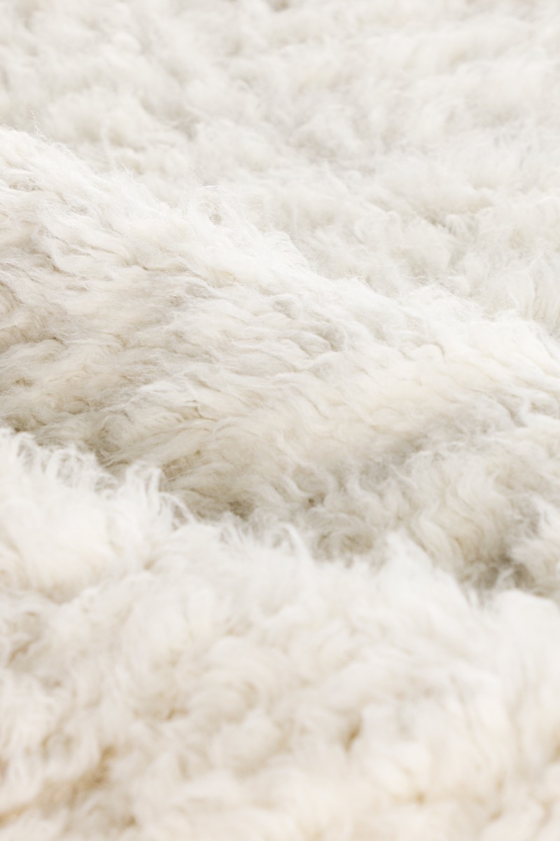 Elegant och mjuk vit ullmatta som ger naturlig komfort och stilren design. Perfekt för alla rum med lättskött och hållbart ullmaterial.