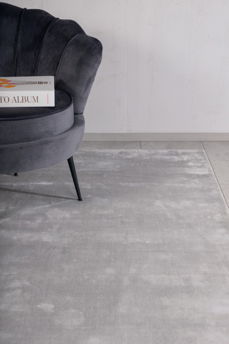 Ljusgrå viskosmatta med mjuk textur och elegant design. Perfekt för att skapa en varm och stilren atmosfär i ditt hem.