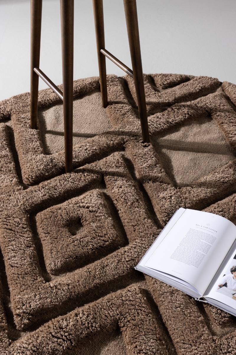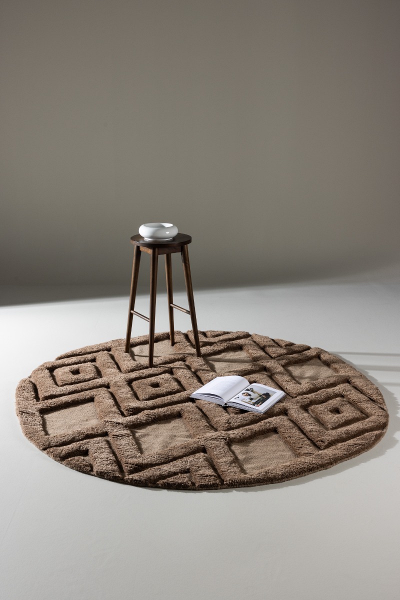 Elegant Rund Ullmatta i Varma Bruna Toner – Perfekt för Hemmets Alla Rum