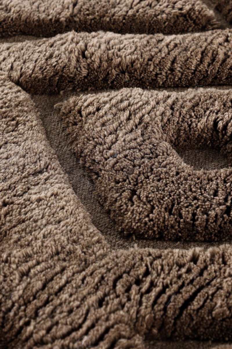 Mjukt rund ullmatta i brun nyans med cirka 15 mm tjocklek. Naturlig komfort och stilren design som passar alla rum.