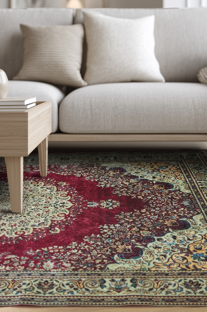Tidlös och lyxig Wiltonmatta i djup röd nyans